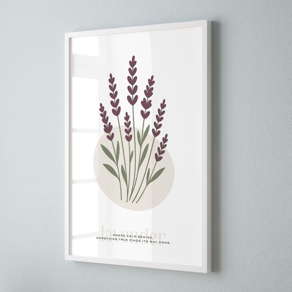 Die sanften Lavendeltöne und klaren Linien bringen Natürlichkeit und Ruhe in deinen Raum. Dieses Blumen Wandbild ist mehr als Dekoration – es ist eine Erinnerung an bewusste Momente, an das Loslassen und an das Heimkehren zu dir selbst.