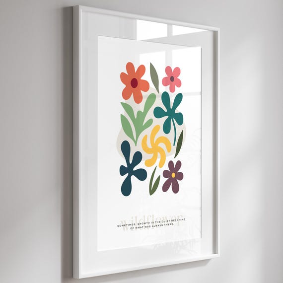 Dieses farbenfrohe Wildblumen Poster aus der Serie Soulful Blooms feiert das leise, stetige Wachsen – das Werden zu dem, was du schon immer warst. Inspiriert von der Symbolik wilder Blumen – Freiheit, Vielfalt und Lebenskraft – erinnert dich dieses Motiv daran, dass wahre Schönheit in der Authentizität liegt.