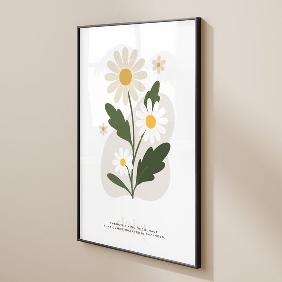 Das Blumen Poster verbindet natürliche Ästhetik mit einer sanften Affirmation über Mut und Achtsamkeit. Die schlichten Formen und warmen Farben schaffen Ruhe und Leichtigkeit – ideal für alle, die sich eine achtsame, naturverbundene Atmosphäre in ihrem Zuhause wünschen.