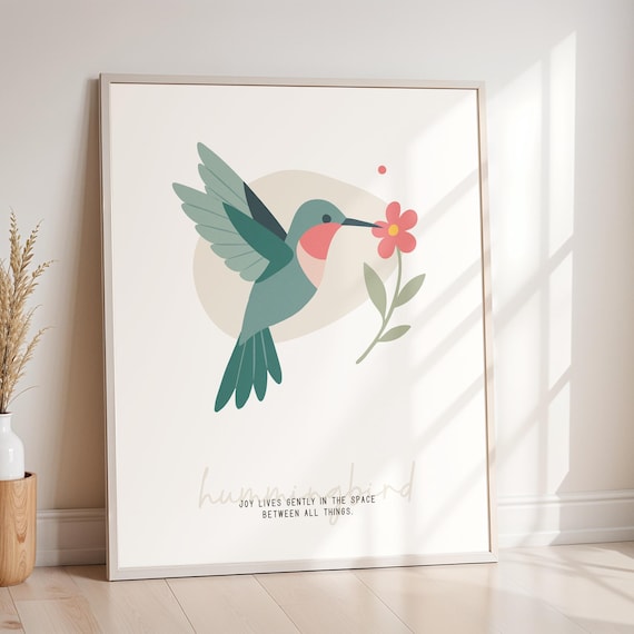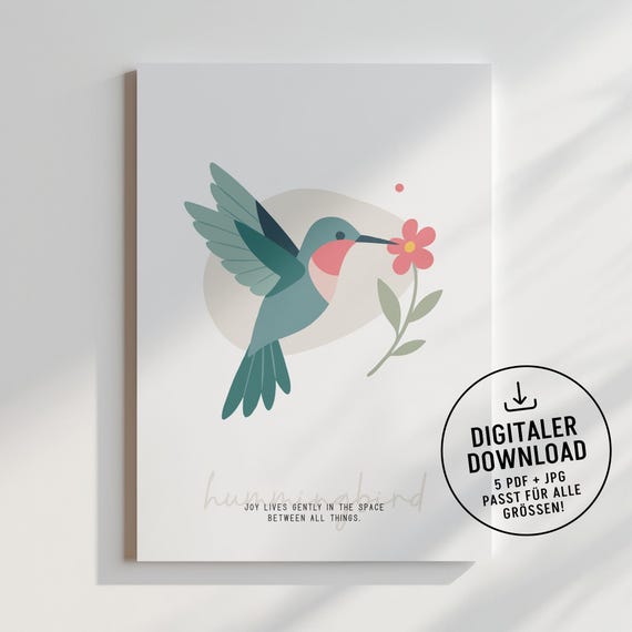 Es ist mehr als eine Illustration – es ist eine Einladung, die Schönheit und Freude im Kleinen zu entdecken. Der Kolibri steht für Leichtigkeit, Bewegung und das sanfte Strahlen des Alltags. Dieses Poster erinnert dich daran, dass Freude überall zu finden ist, wenn wir aufmerksam durch das Leben gehen.