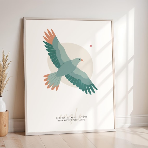 Es lässt sich wunderbar mit anderen Vogelbildern, botanischen Motiven oder spirituell angehauchten Prints kombinieren – ideal für eine ruhige, liebevoll gestaltete Galeriewand.
