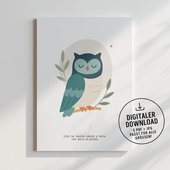 Dieses Kunstwerk ist mehr als dekorativ – es ist eine Erinnerung daran, dass Antworten in der Stille geboren werden. Die Eule lädt dich ein, deiner inneren Führung zu vertrauen und die Wahrheit hinter den sichtbaren Dingen zu erkennen. Ein weiches, achtsames Motiv, das jedem Raum Tiefe und Bedeutung schenkt.